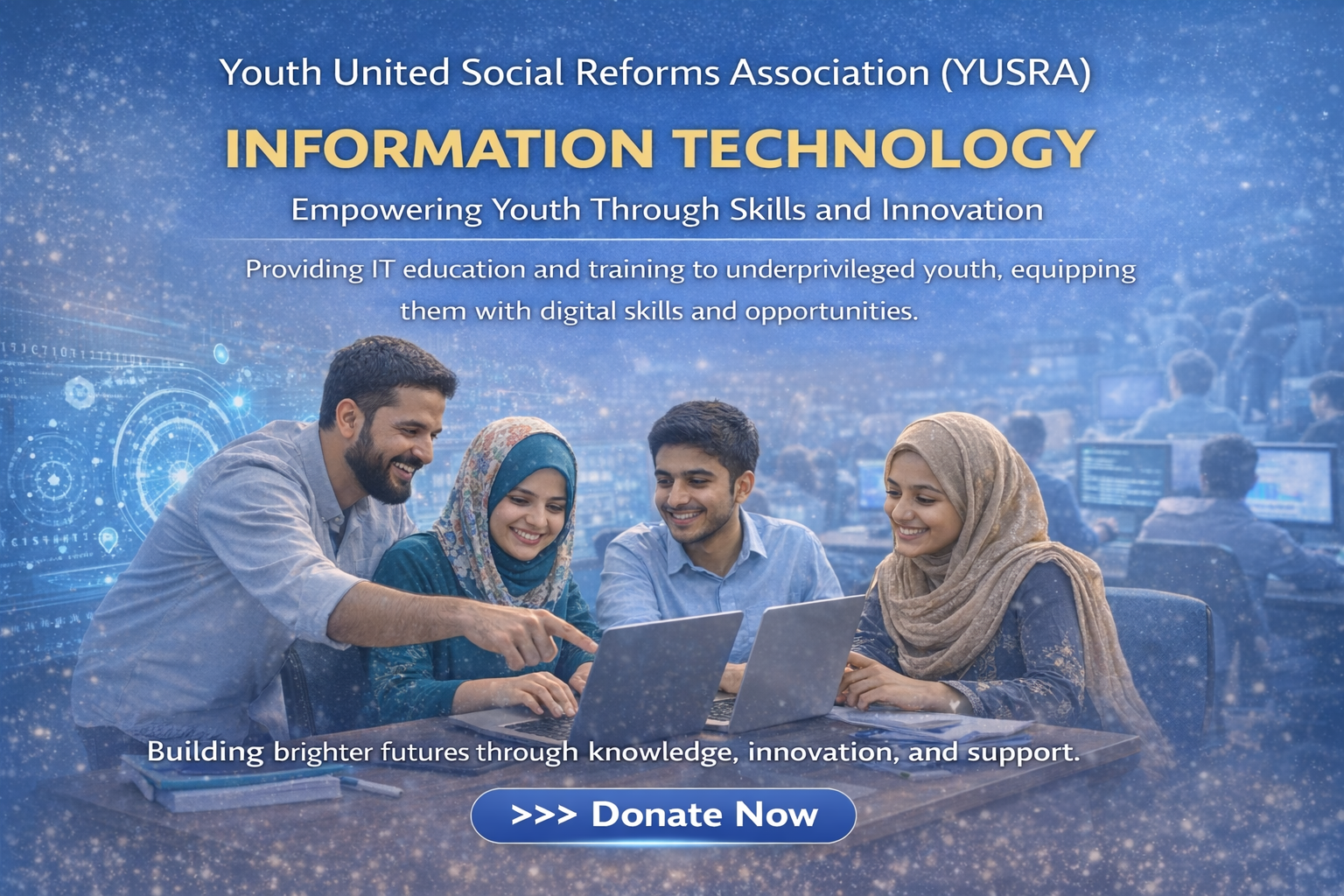 The Information Technology (IT) Program by Youth United Social Reforms Association (YUSRA) is designed to equip youth with modern digital skills and technical knowledge to help them build a better future. In today’s world, technology plays a vital role in education and employment. Through this program, YUSRA aims to provide quality IT education to students and unemployed youth so they can become skilled and self-reliant.